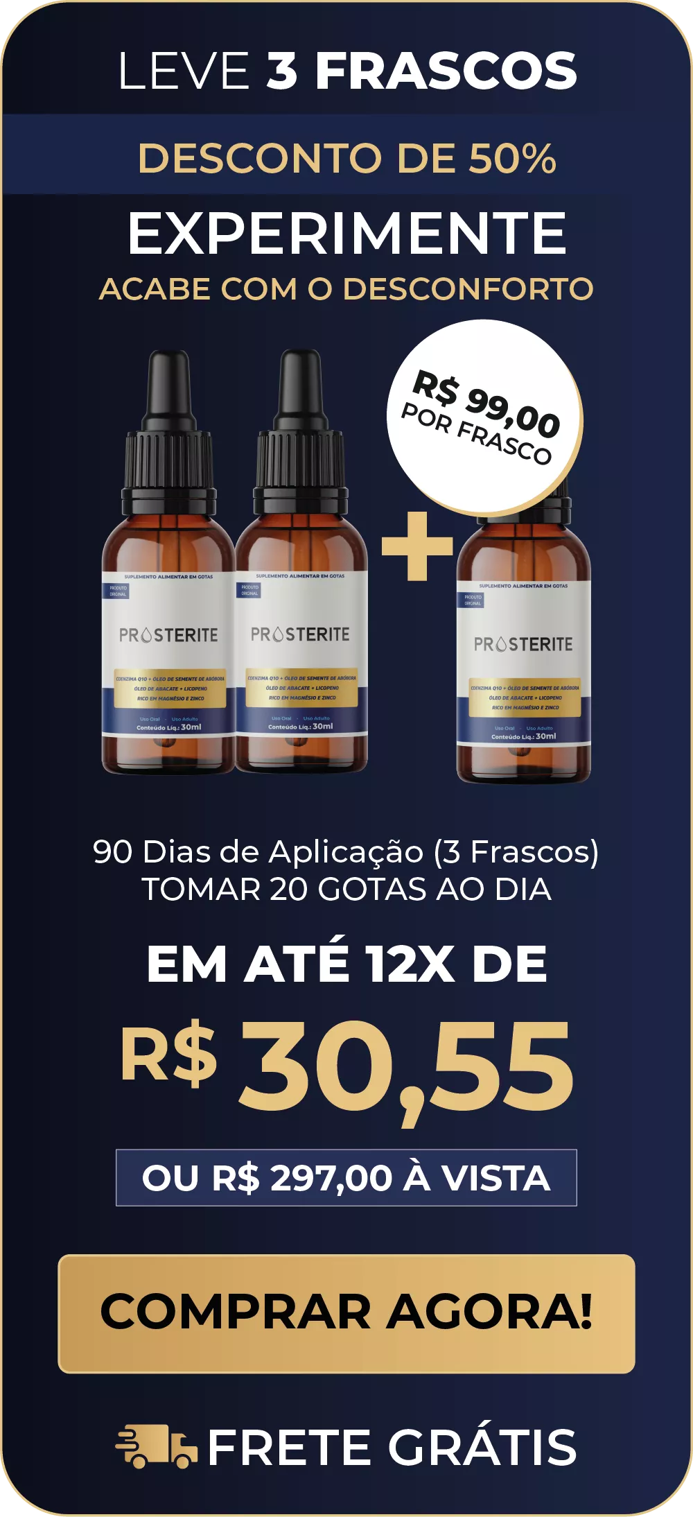 Com sua composição poderosa, o Prosterite alivia a sensação desconfortável de bexiga cheia, proporcionando maior conforto e bem-estar.
